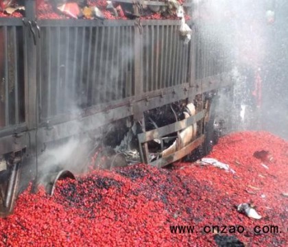 衡陽一裝載新疆大棗的貨車撞上高壓線起火